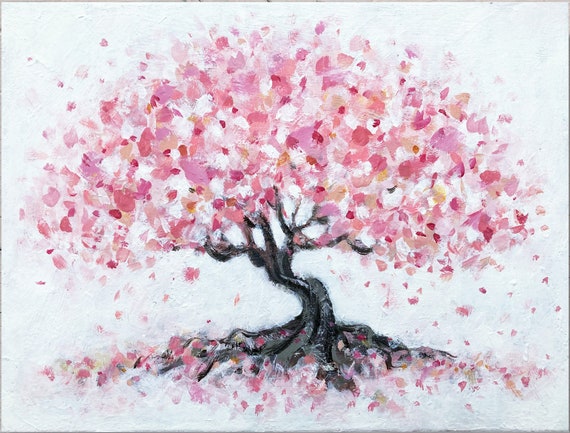 Peinture d'arbre de fleur de cerisier sur toile, peinture originale sur toile de boîte étirée, peinture d'arbre, peinture originale d'arbre de fleur de cerisier rose - Etsy France