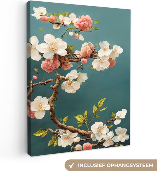 Toile Peinture Fleurs - Fleur - Cerisier - Branche - Wit - 30x40 cm - Décoration murale | bol