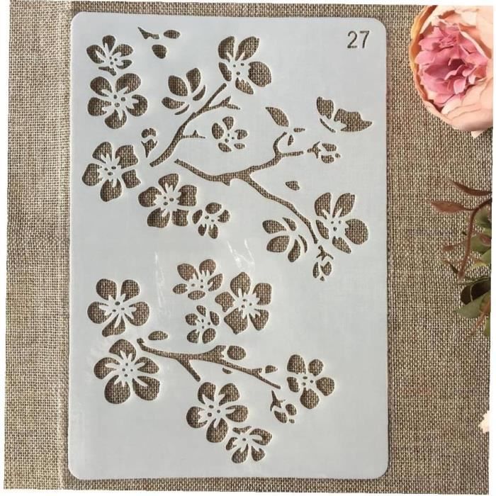 Pochoir pour Fleurs De Cerisier Modèle De Peinture De Branche De Fleur De Pêcher en Plastique pour Projets De d'art DIY[585] - Cdiscount Bricolage