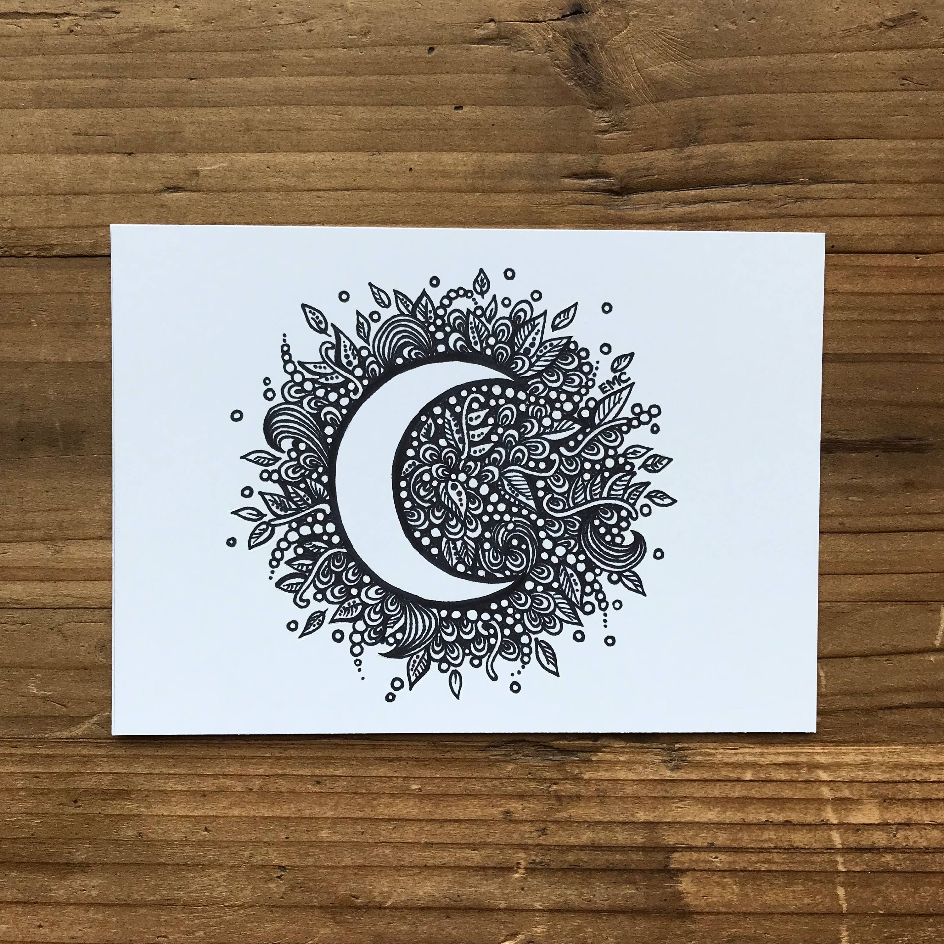 Art de croissant de lune, croissant de lune lune dessin Floral Art ...