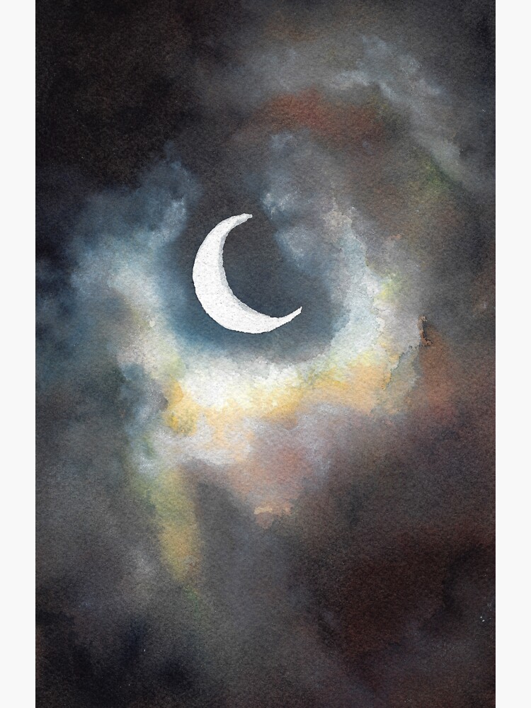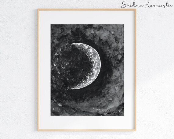 Aquarelle croissant de lune, peinture de lune noir et blanc ...