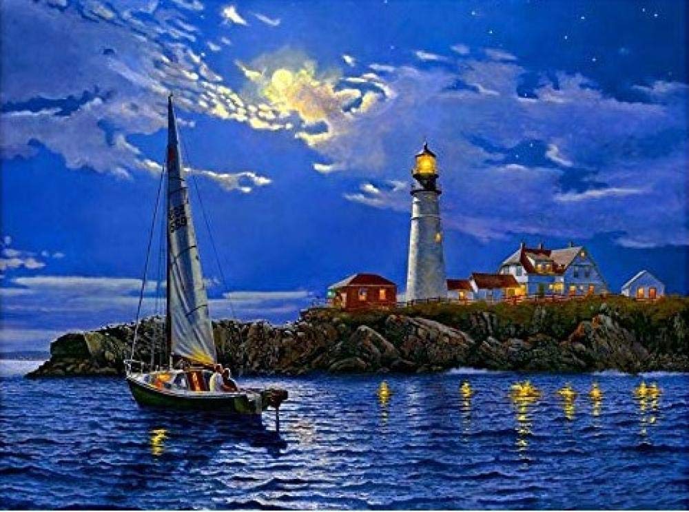 DIY 5D Broderie Diamant Kit Complet,Le Phare De La Nuit, 5D ...
