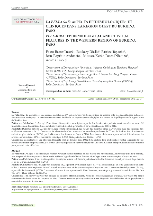 PDF) La pellagre: aspects épidémiologiques et cliniques dans la ...