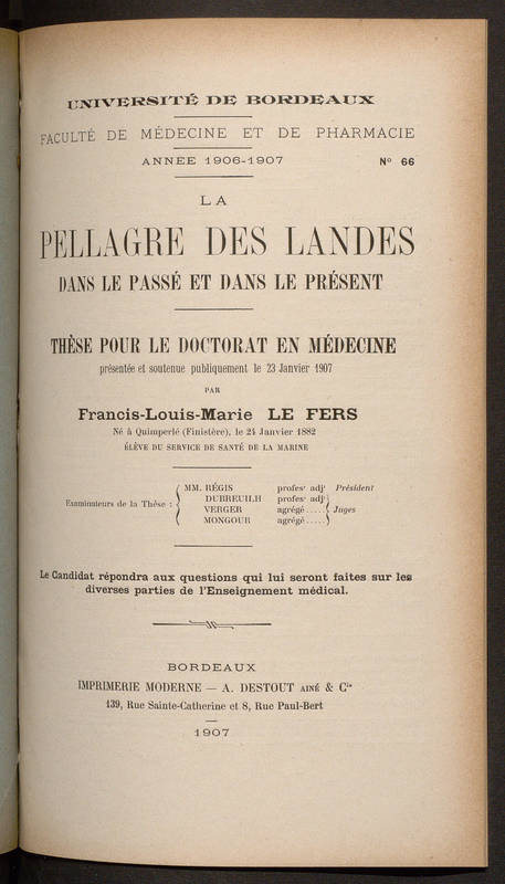De la Pellagre (Cand. J.-M. Gustave Hameau) 1853 [Leather Bound ...