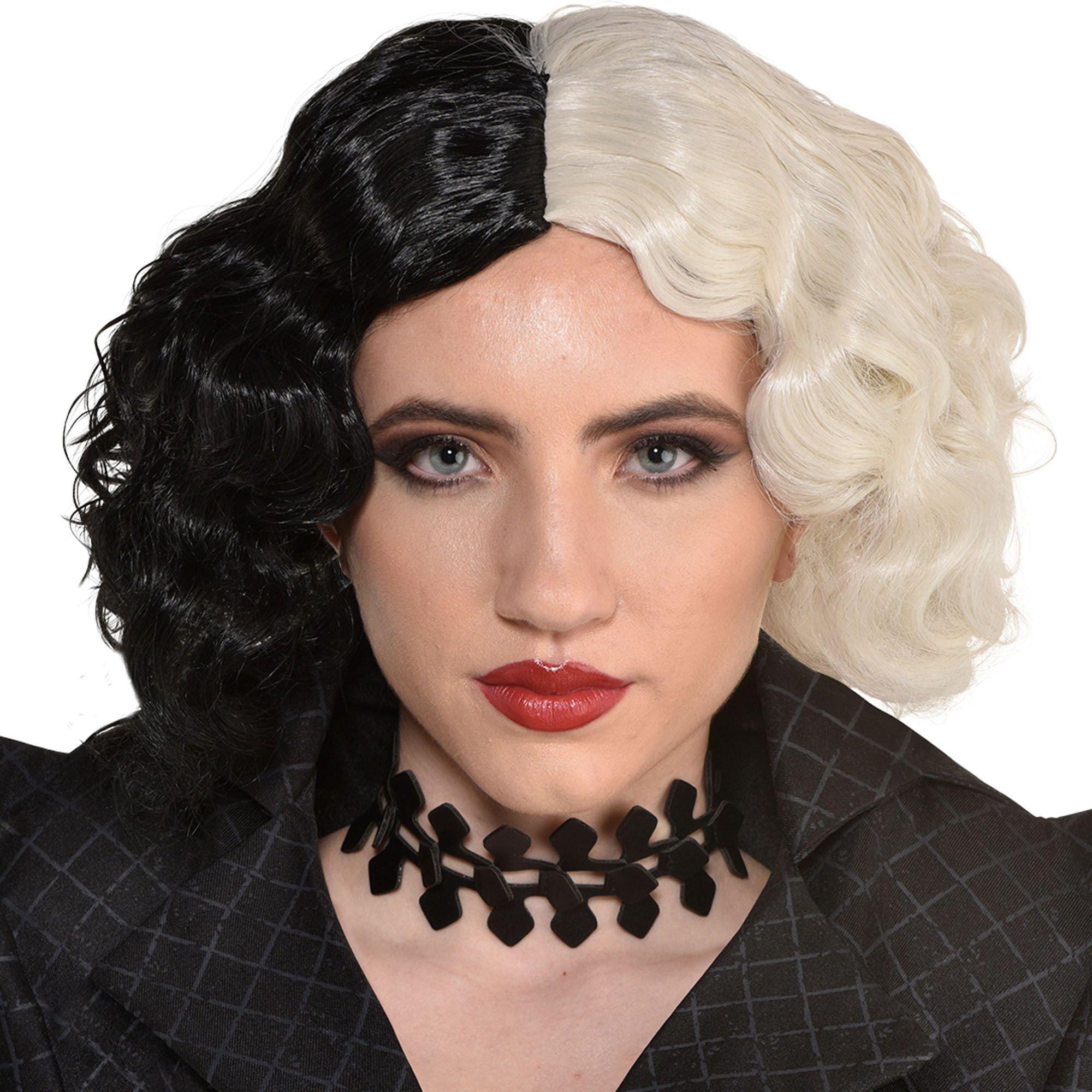 Disney 101 Dalmations Cruella De Vil Live-Action Movie Short Curly Hair Wig, Black/White, One Size, Wearable Costume Accessory for Halloween | Party City