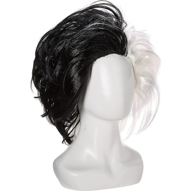 Perruque de Cosplay synthétique de haute qualité Cruella de Vil, noire, blanche, blonde, courte et cruelle, résistante à la chaleur, perruque de fête + bonnet - AliExpress