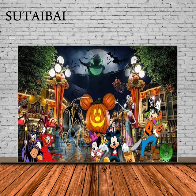 Bannière de personnages de dessins animés, thème thème thème thème thème thème Halloween, thème thème thème nuit des cauchemars, fond de noël, Mickey Mouse, tête de citrouille - AliExpress