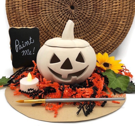 Support de lumière votive de citrouille, bisque en céramique Jackolantern d'Halloween, poterie prête à peindre, projet de peinture de citrouille d'art et d'artisanat de bricolage - Etsy Canada