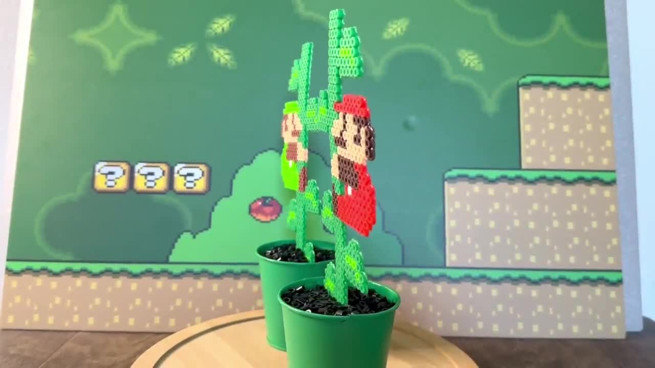 Large Retro Mario and Luigi Plant | Video game decor | Desk Plant | Game Room Decor | Super Mario Plant | Pixel Piranha Plant | Mario Flower