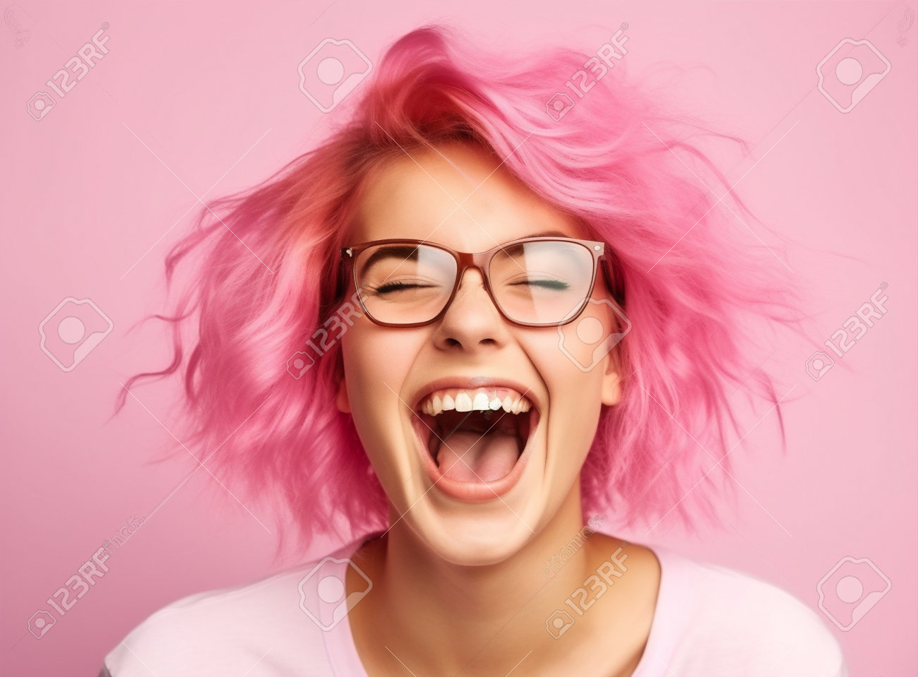 Personne Femme Beauté À La Mode Folle Expression Mignonne Cheveux Roses Visage Heureux. IA Générative. Banque D'Images et Photos Libres De Droits. Image 208978368