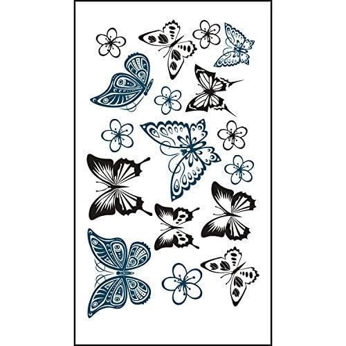 CHICNET Tatouage papillon noir rose lignes fleurs petit seul 1 feuille, multicolore, taille unique
