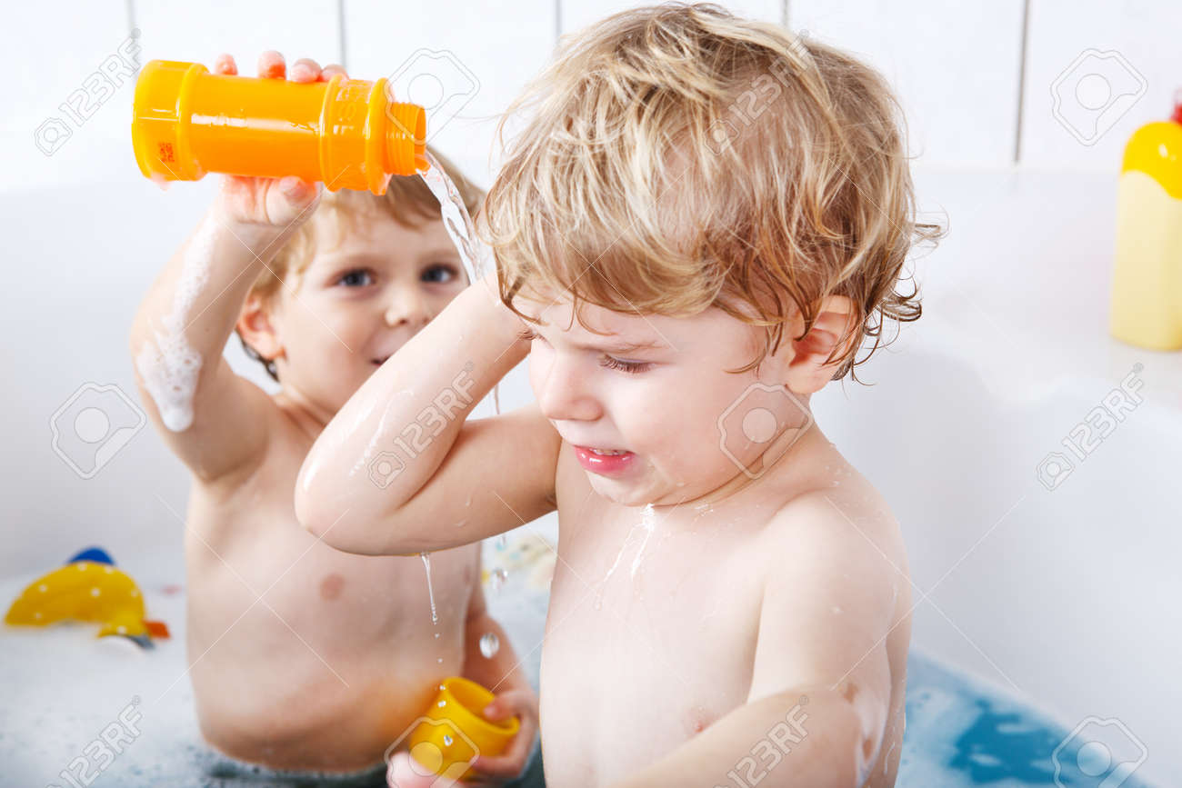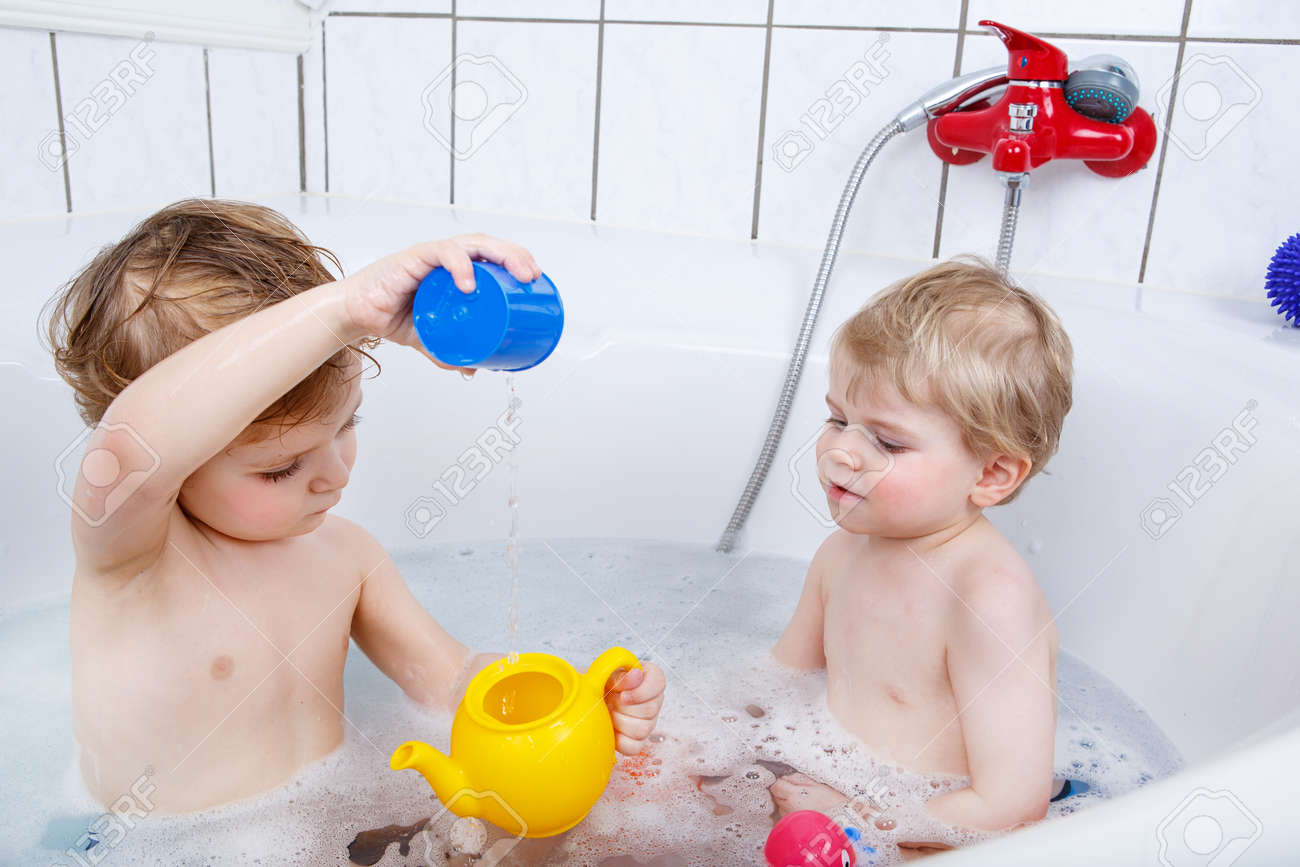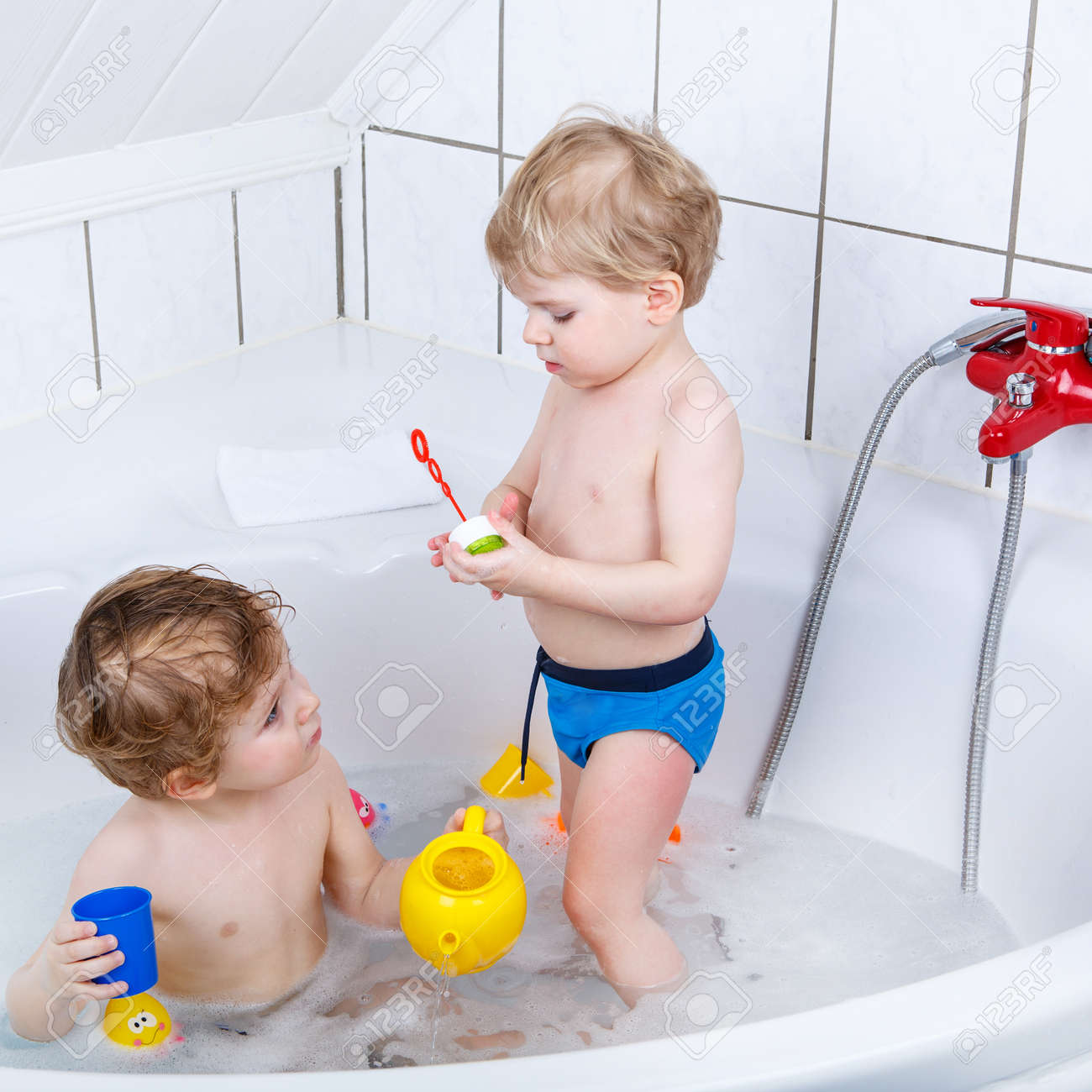 Deux Petits Jumeaux Garçons Jouant Avec De L'eau En Prenant Un Bain Dans La Baignoire Banque D'Images et Photos Libres De Droits. Image 34279429