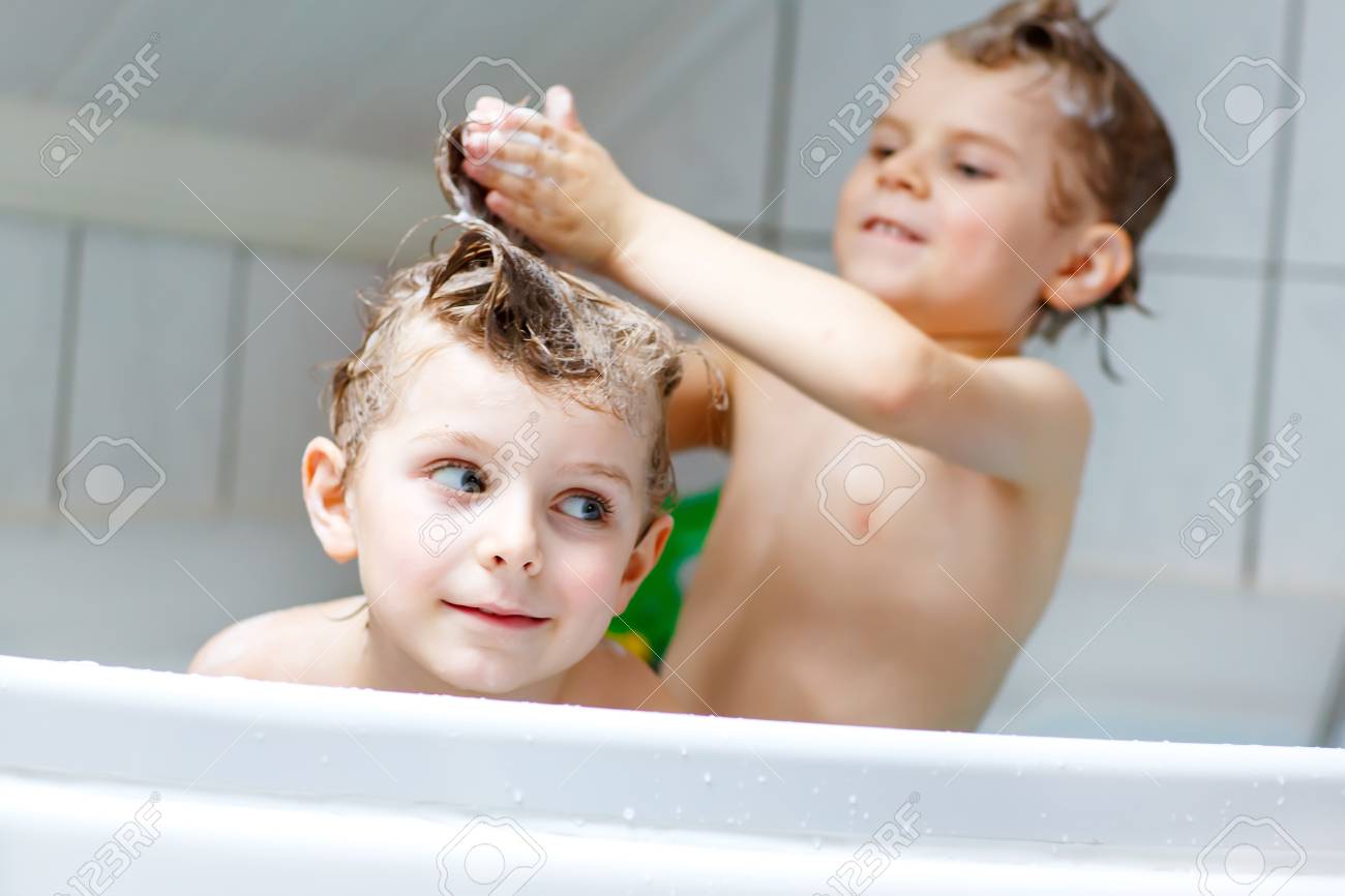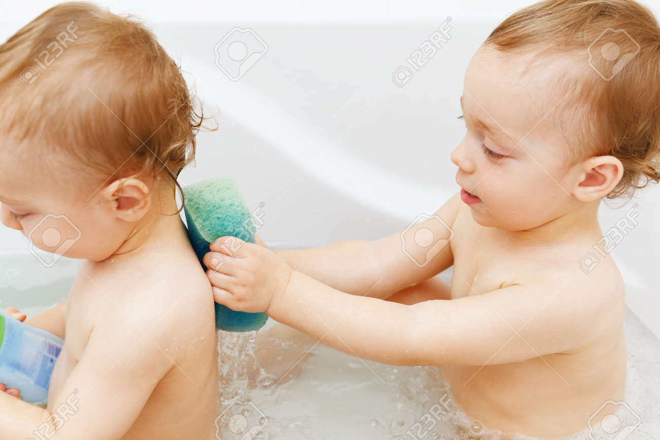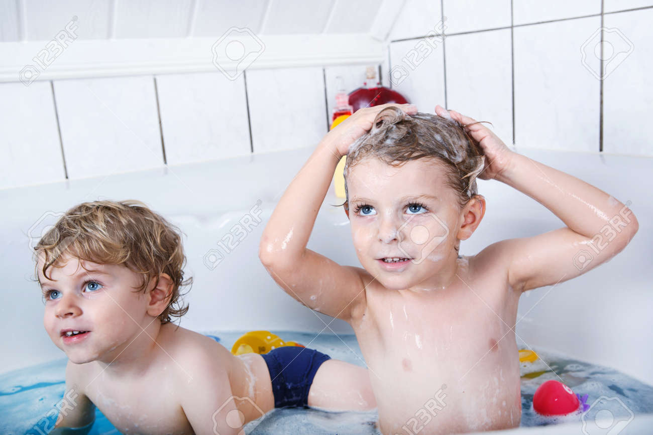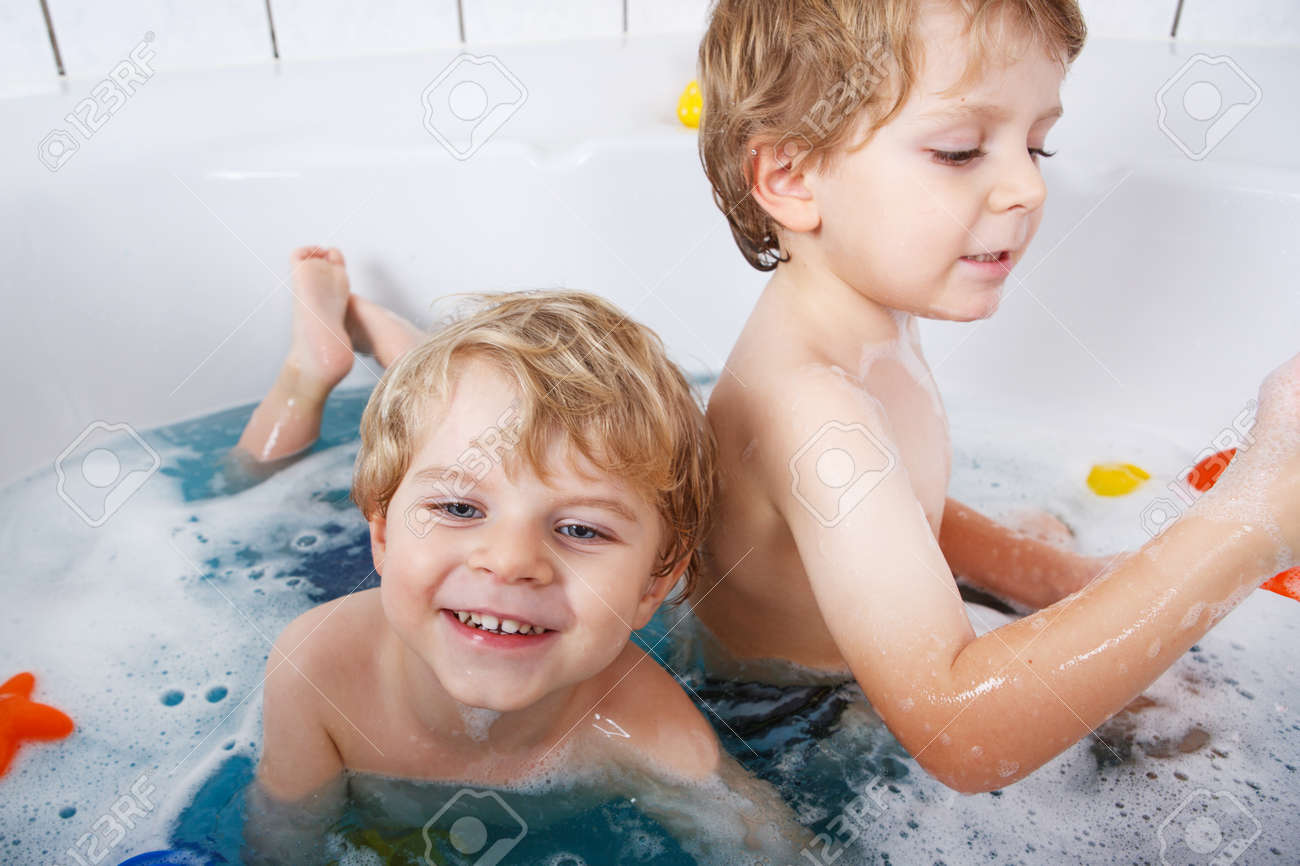 Deux Petits Jumeaux Garçons Jouant Avec De L'eau En Prenant Un Bain Dans La Baignoire Banque D'Images et Photos Libres De Droits. Image 34279429