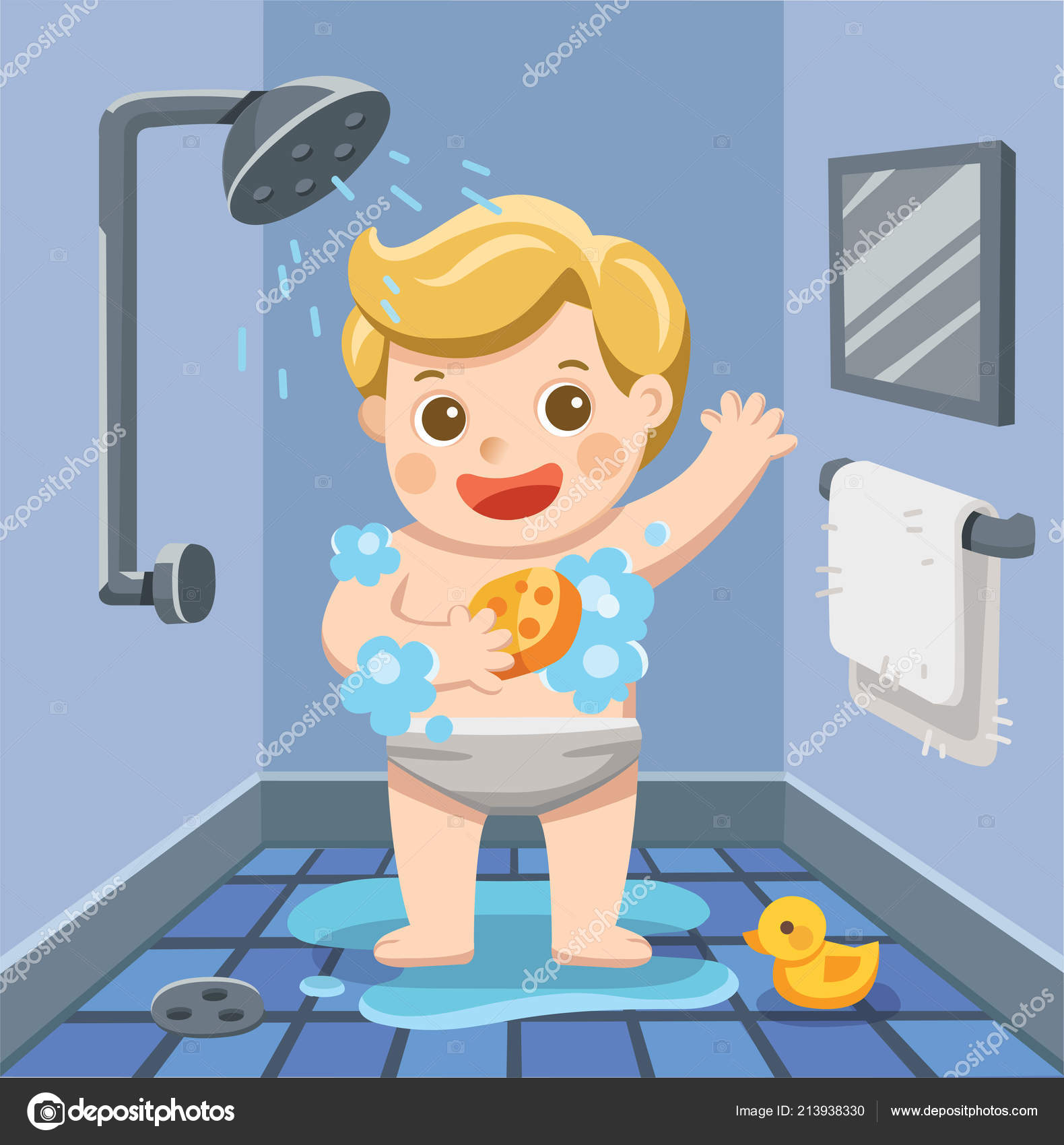 Un Garçon Prenant Une Douche Dans La Salle De Bains Illustration de Vecteur - Illustration du sort, heureux: 115633578