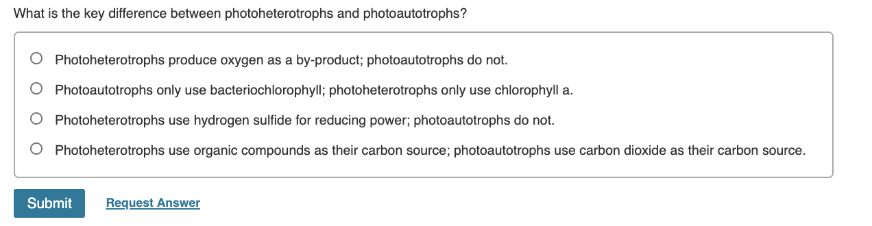 Solved What is the key difference between photoheterotrophs | Chegg.com