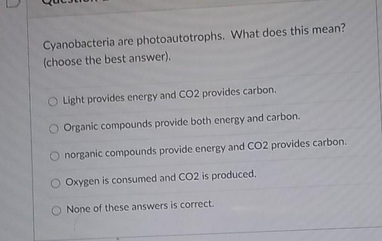 Solved Cyanobacteria are photoautotrophs. What does this | Chegg.com