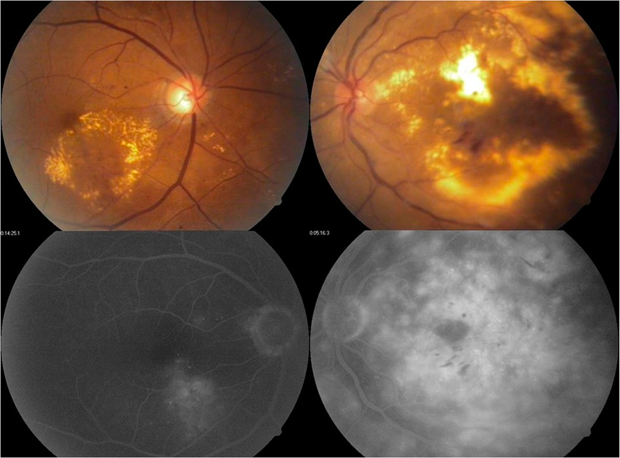 Fundus image demonstrating focal/grid photocoagulation burns ...