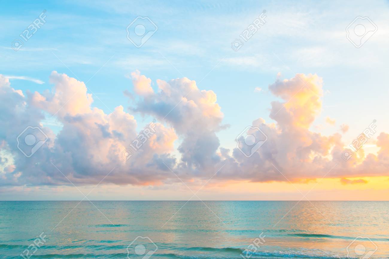 Beau Coucher De Soleil Nuages Dans Le Ciel Au-dessus De La Mer ...