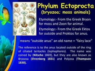 Slides on Phylum Ectoprocta - Animal Diversity Lab | BSC 2011L | Study notes Biology | Docsity