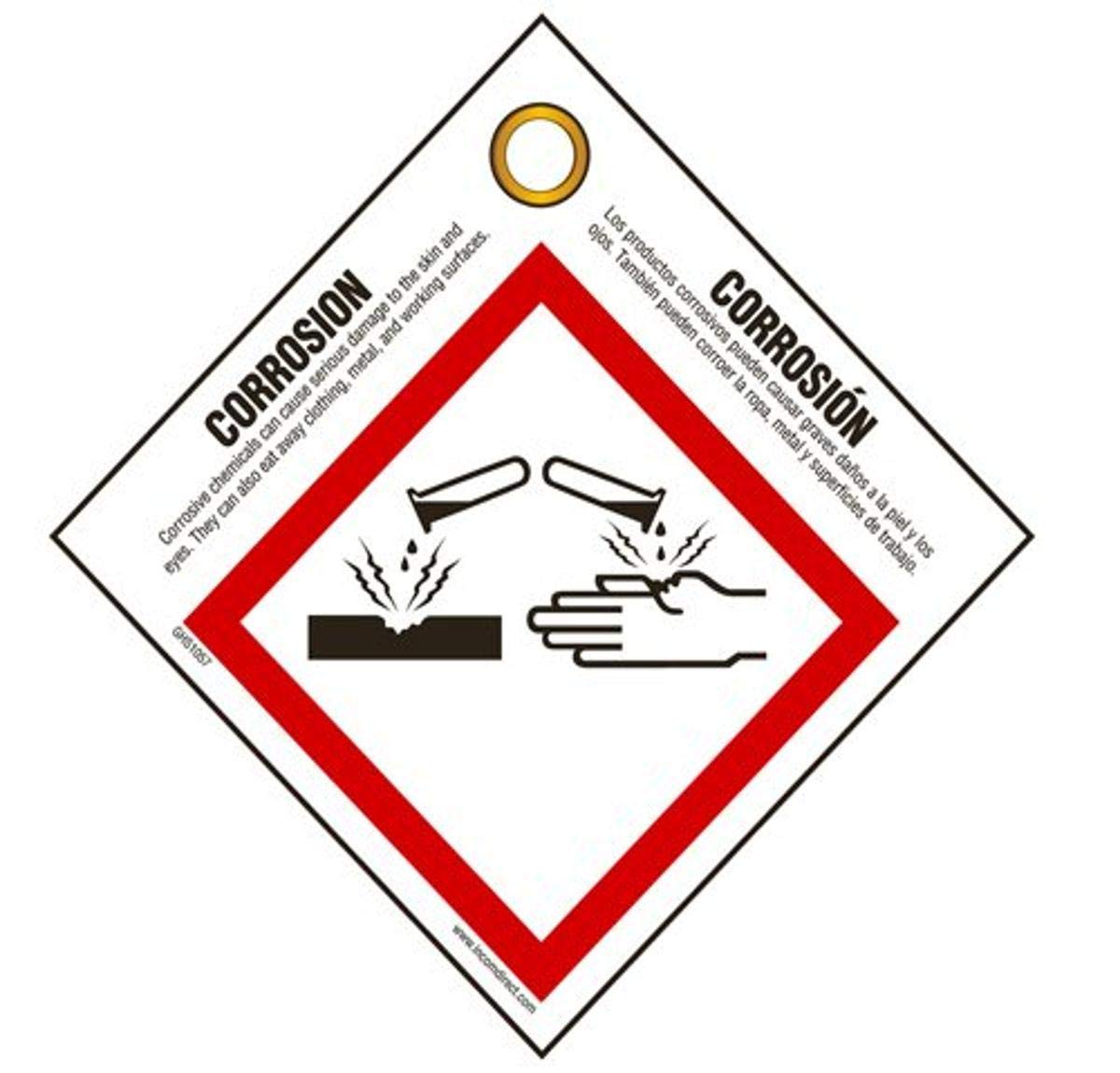 GHS/HazCom 2012: Pictogram Tag, Corrosive, English/Spanish (Pack ...