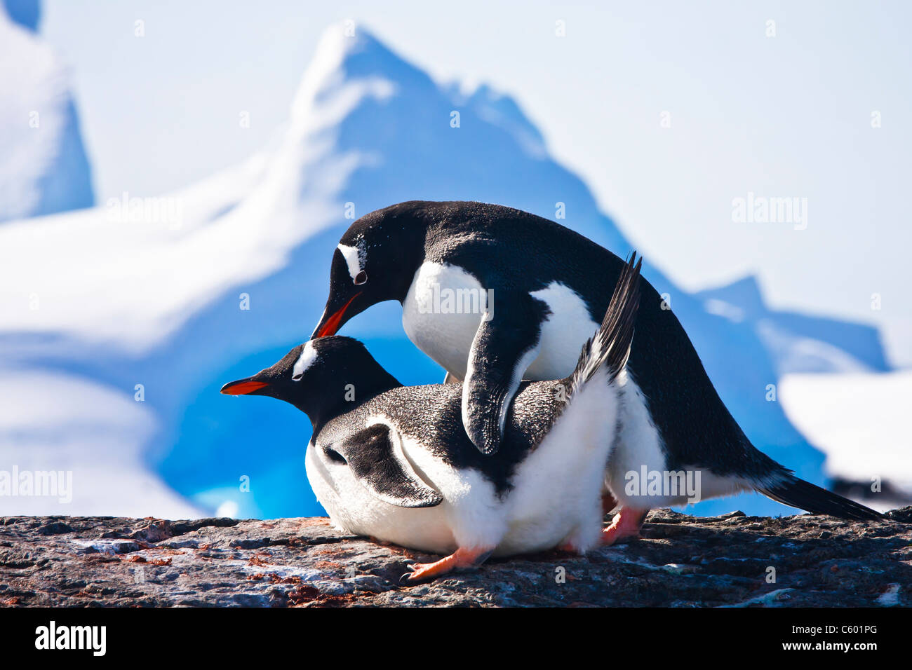 Couple de pingouin câlin dans le pôle nord de l'Arctique 1634633 ...