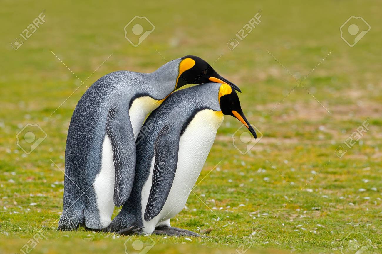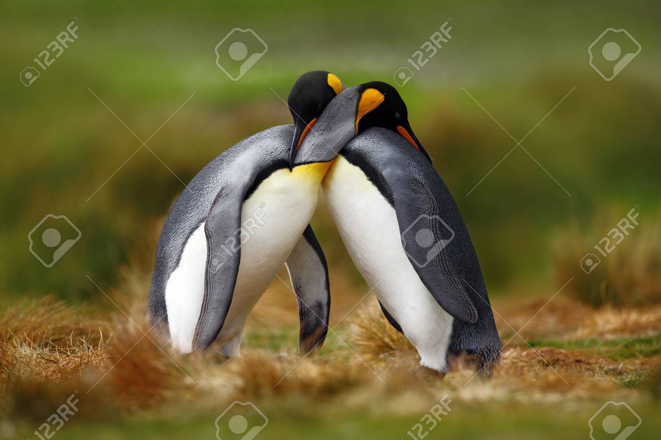 Amour Animal. Roi Couple Pingouin Câlins, Nature Sauvage, Fond ...