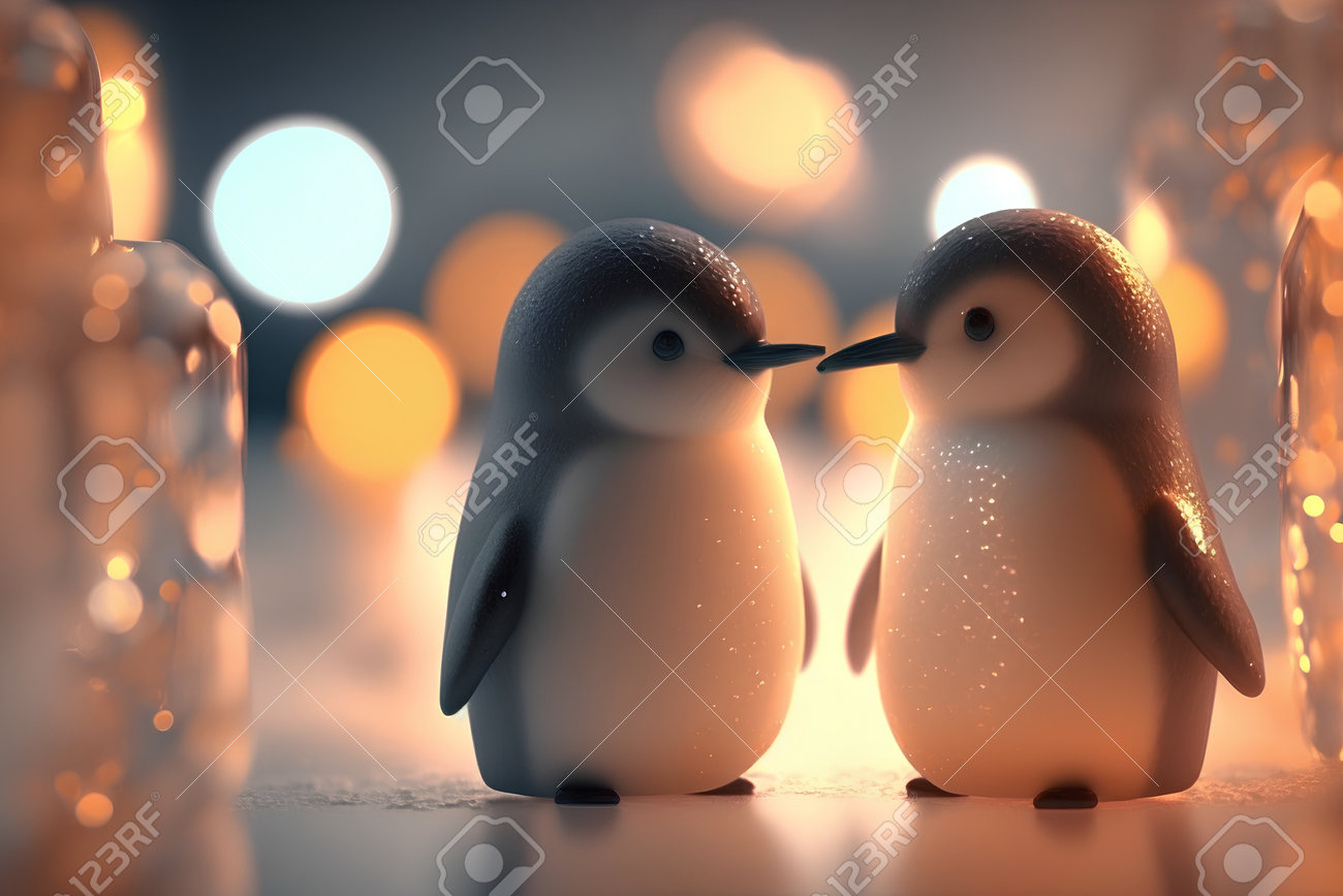 Couple De Pingouins Amoureux De L'arrière-plan Flou Des Lumières ...