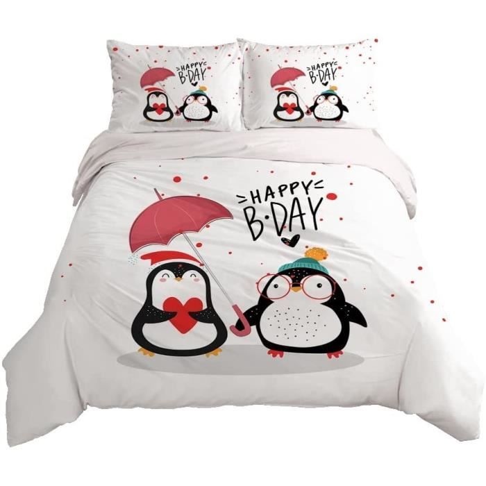 Housse de Couette 220x240cm Pingouins Amoureux Microfibre avce 2 ...
