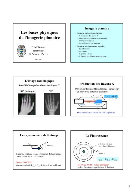 Les bases physiques de l'imagerie planaire