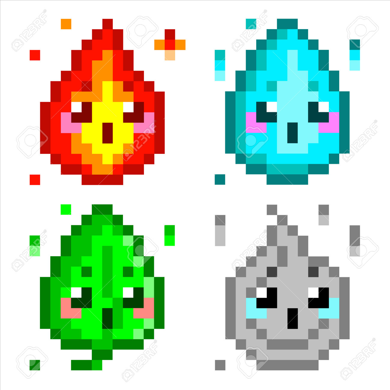 Nature Elements Vector Pixel Art. Four Classical Elements - Earth, Water, Air, Fire. Cute Game Design Icons Royalty Free SVG, Cliparts, Vectors, and Stock Illustration. Image 181609323., pixel art