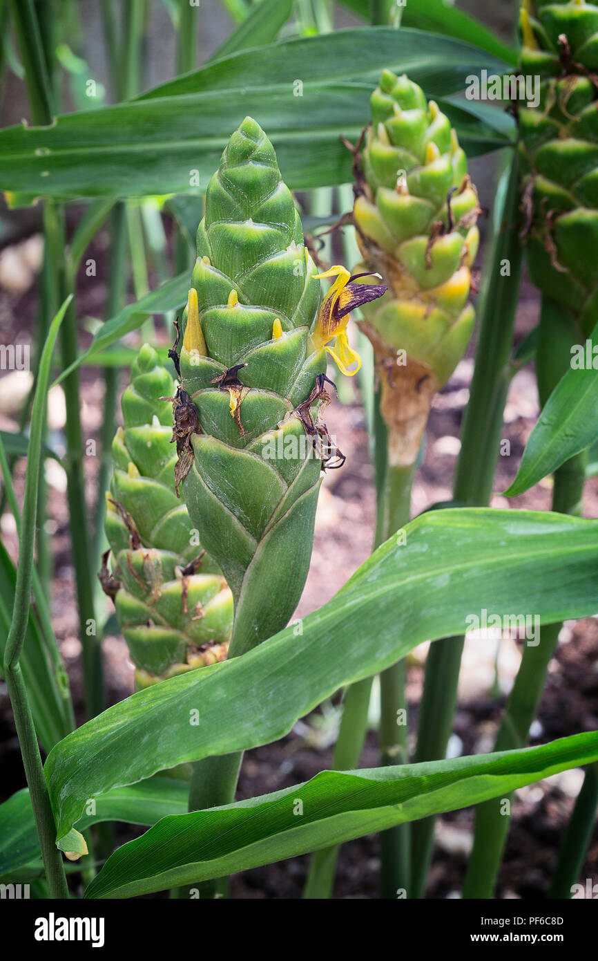 Le gingembre (Zingiber officinale) est une plante vivace aux rhizomes comestibles et médicinaux. Est originaire de l'Asie du Sud. Cette photo a été prise à Phuket Photo Stock - Alamy