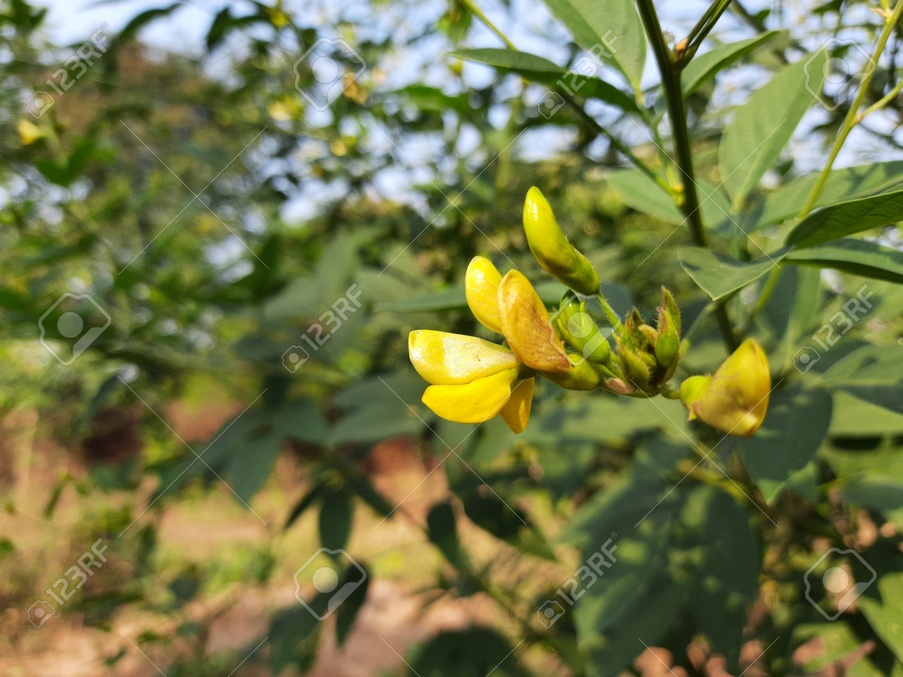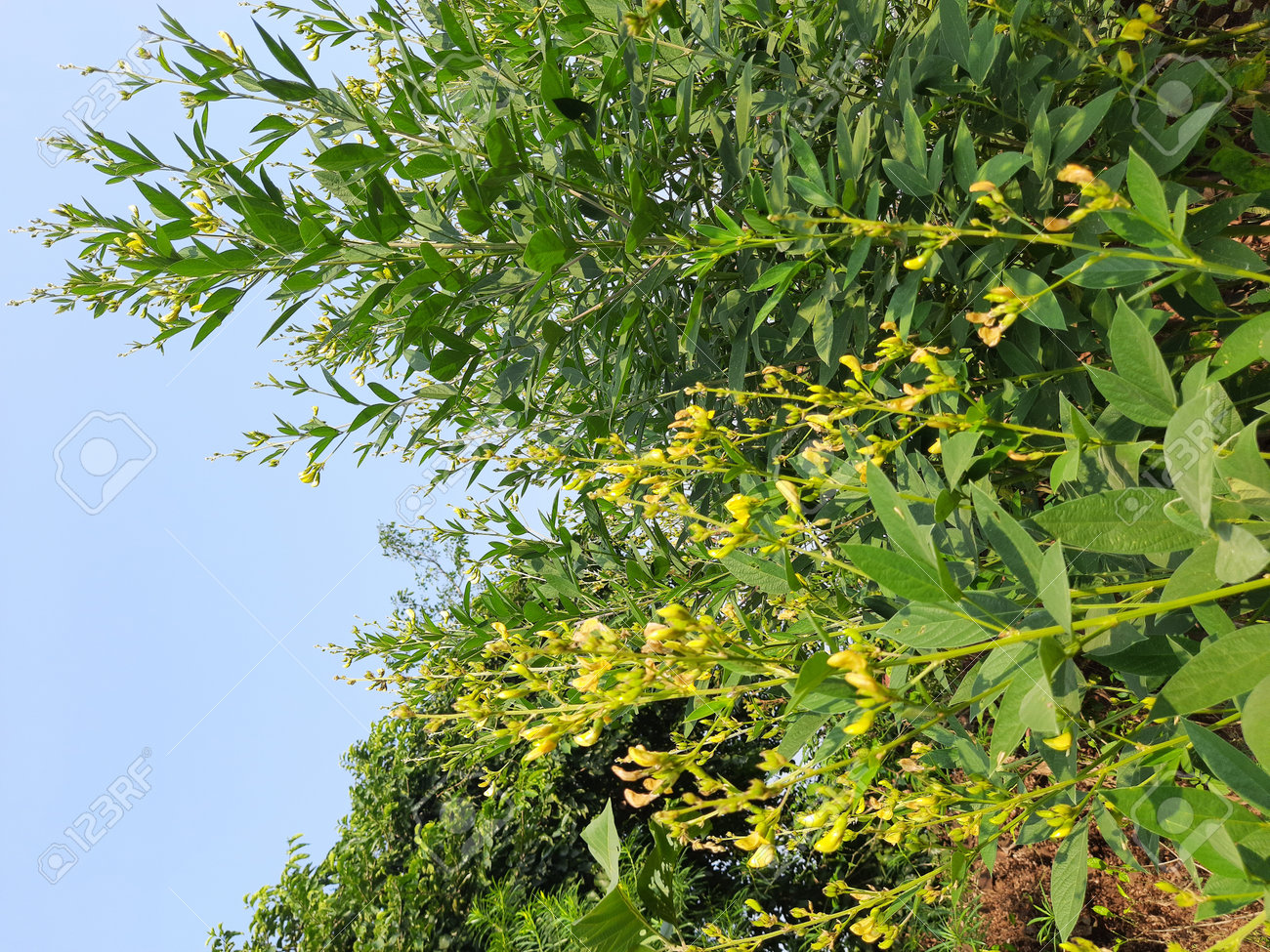 Récolte De Pois Cajan Avec Des Fleurs. La Plante De Pois Cajan Est Au Stade Floral.le Pois Cajan (cajanus Cajan), Également Connu Sous Le Nom De Pois Cajan, Gramme Rouge Ou Tur,