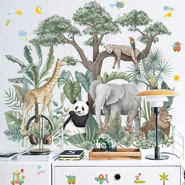 1pc dessin animé forêt tropicale animaux plante autocollant mural ...