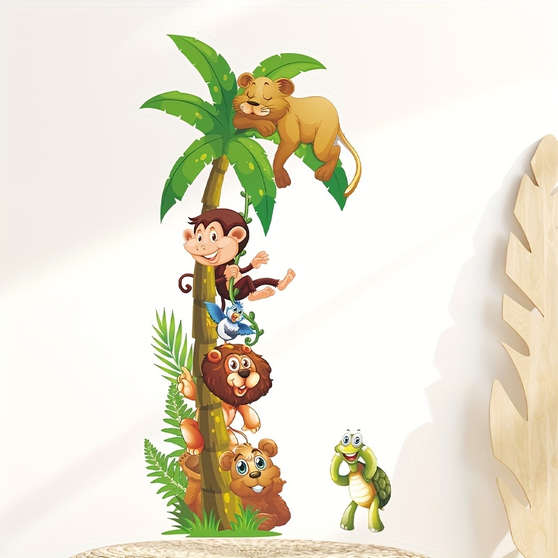 1pc Cartoon Tropical Rainforest Animaux Plante Mur Autocollant ...
