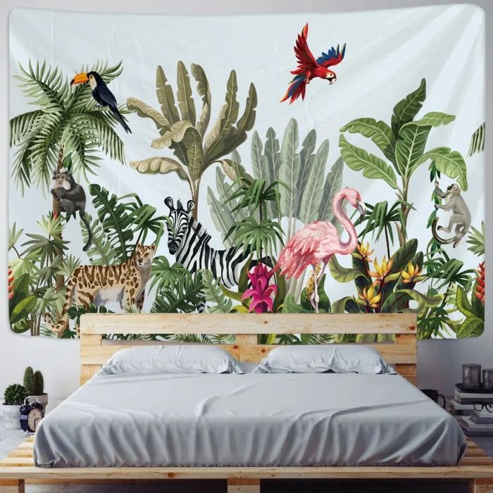 La jungle et ses animaux│ Tapisserie murale jungle│