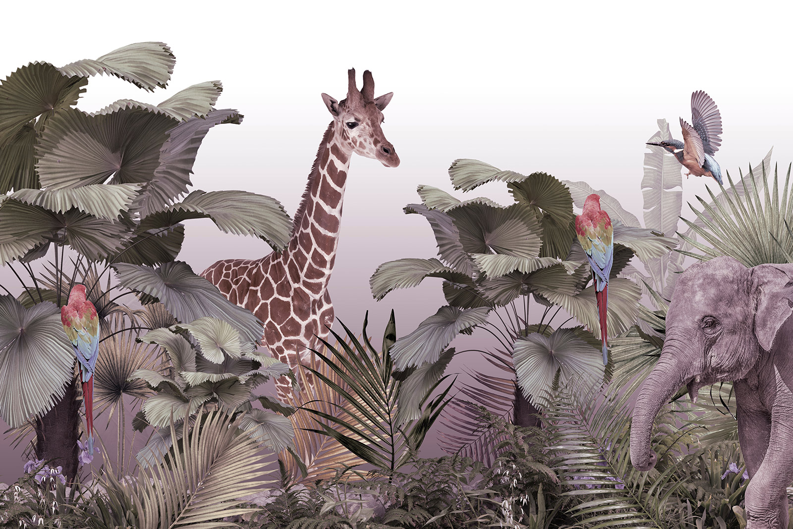 Papier peint original Paysage tropical - jungle avec animaux et ...