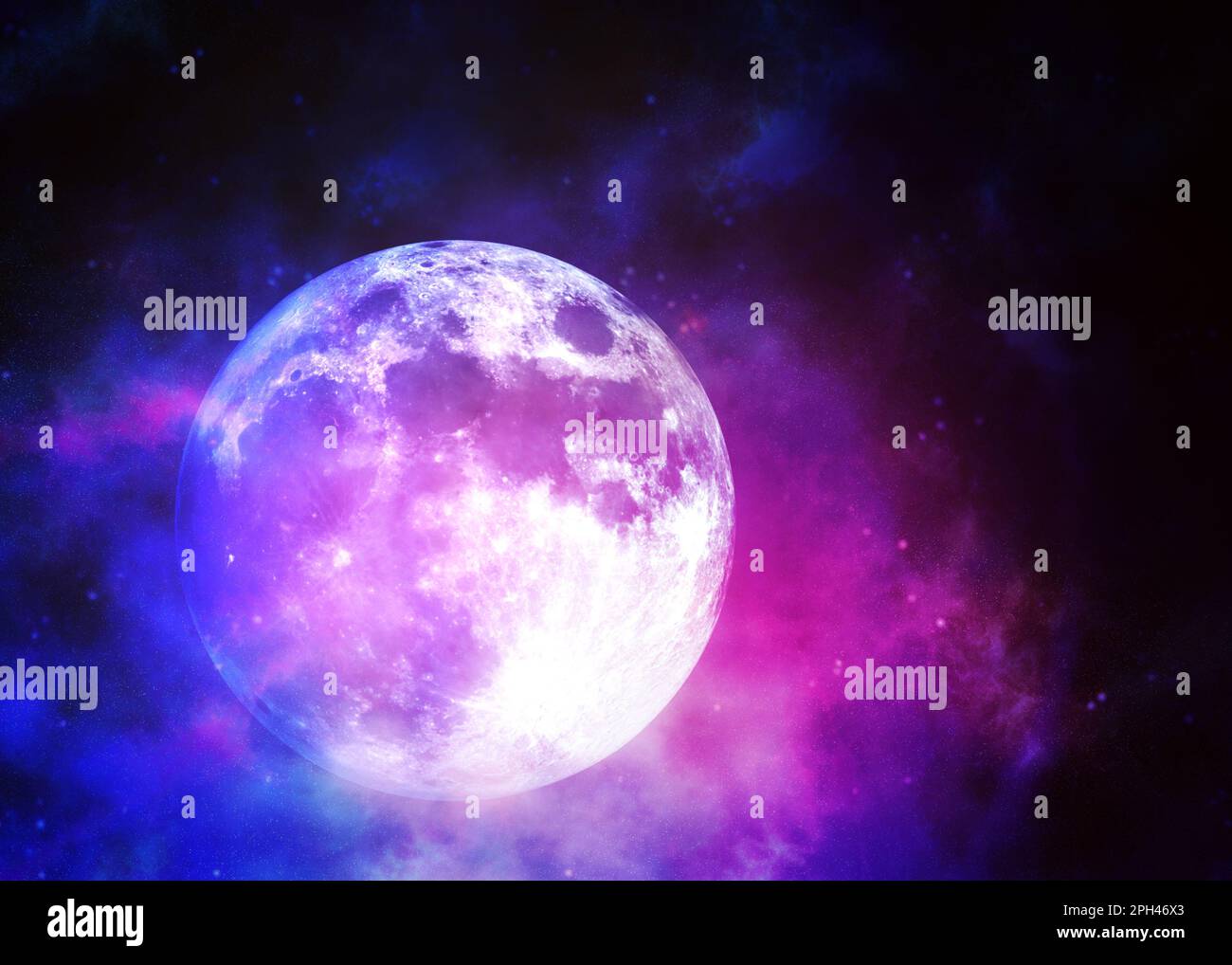 Grand détail 3D pleine lune sur fond ciel étoilé. Les éléments de cette image sont fournis par la NASA Photo Stock - Alamy
