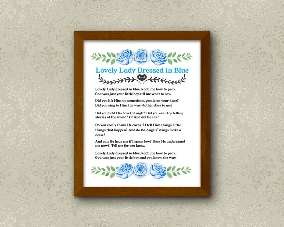Belle dame vêtue de bleu, poème pour enfants, gravure de la Sainte Mère - Etsy France