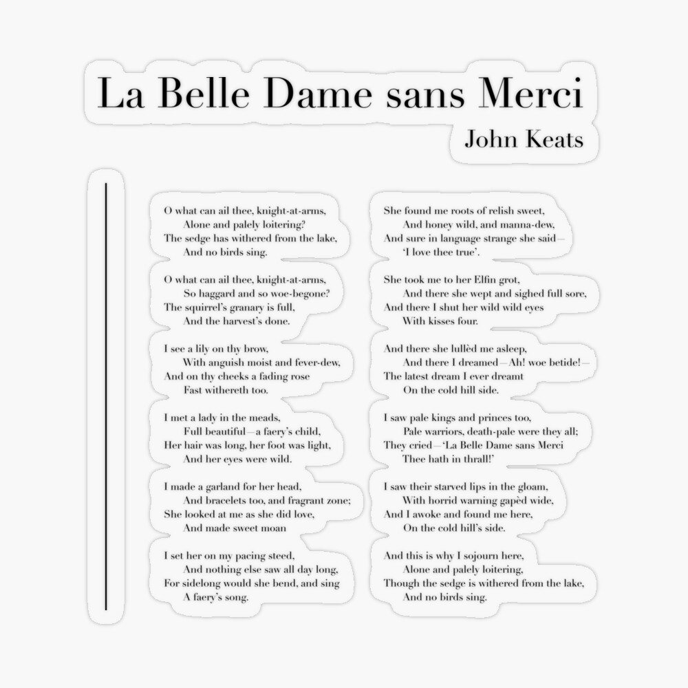 Keats-- La Belle Dame Sans Merci | John keats, Keats, Poems