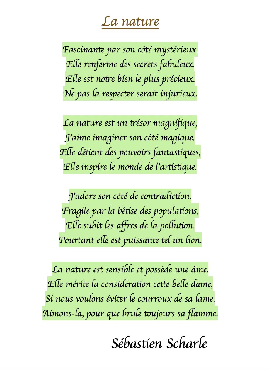 Sébastien_Scharle_auteur on X: "Voici un poème intitulé en hommage à « La Nature ». #balancetapoésie #poésiefrançaise #poesies #poésie #poemes #poèmes #poetes #auteurs #auteurdepoeme #auteurdepoesies #plaisirdecrire #poèmesurlanature ...