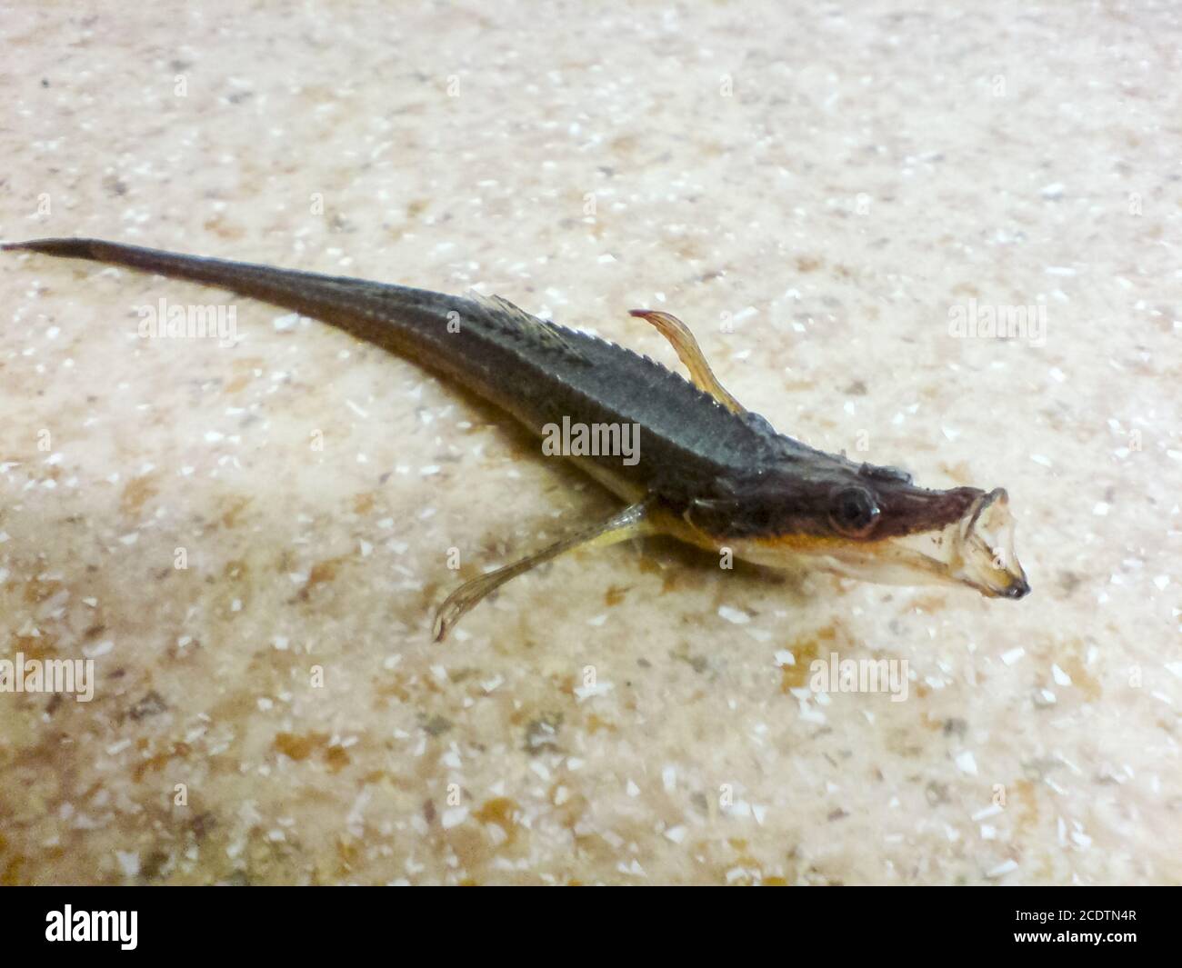 Poisson aiguille. Poisson mince dans la mer noire Photo Stock - Alamy