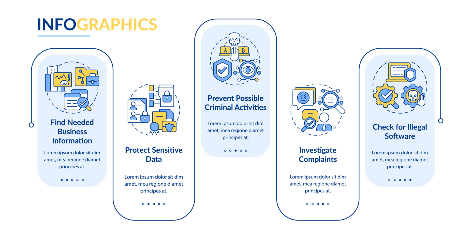 Surveillance legal policy vector infographic template. Work tracking presentation outline design elements. Data visualization with 5 steps. Process timeline info chart. Workflow layout with line icons 5921480 Vector Art at Vecteezy