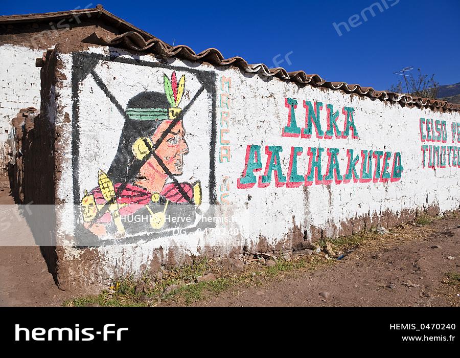 Hemis : Perou province cuzco huasao mur peint parti politique effigie empereur inca pachakutek