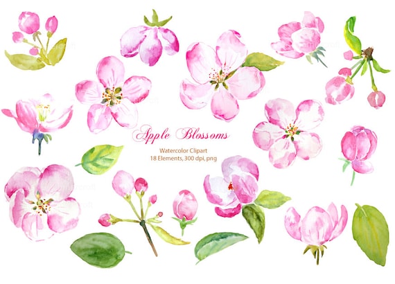 Fleurs de pommier rose pour l’aquarelle peinte à la main rose fleurs imprimable téléchargement immédiat pour les invitations de mariage, cartes de ...