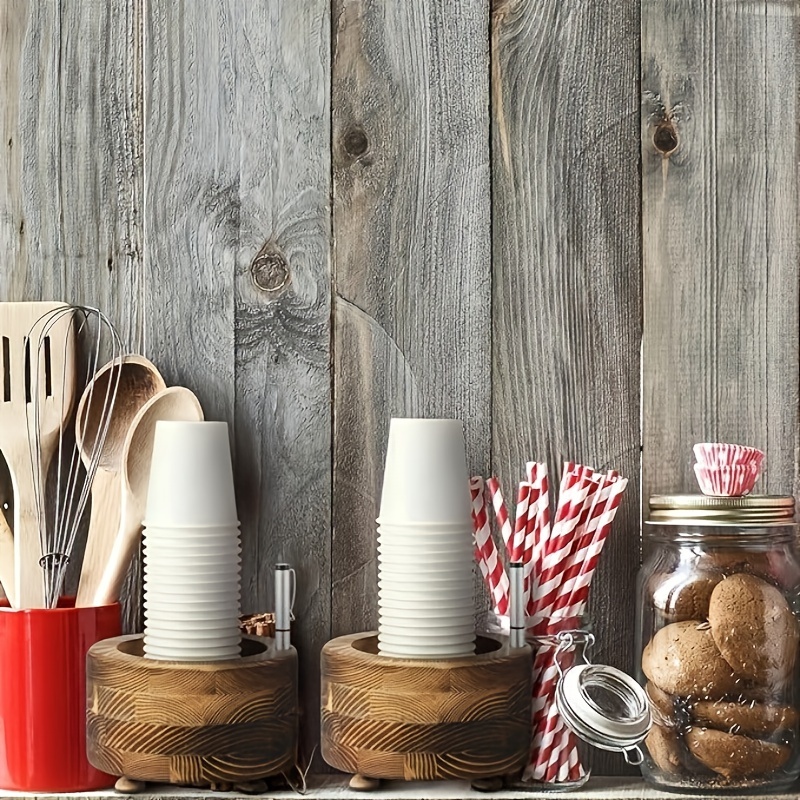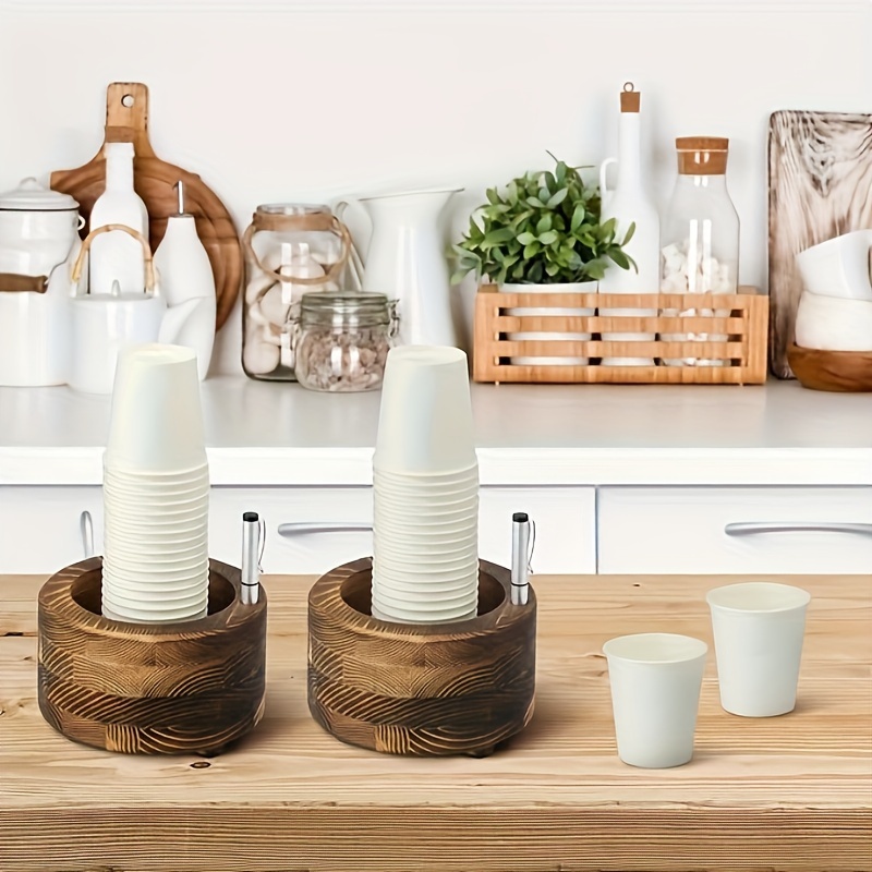 Distributeur De Gobelets Multifonctionnel En Bois Café Bar Organisateur Jetable Café Porte-gobelet Paille Titulaire Café Condiment Organisateur Tasse ...