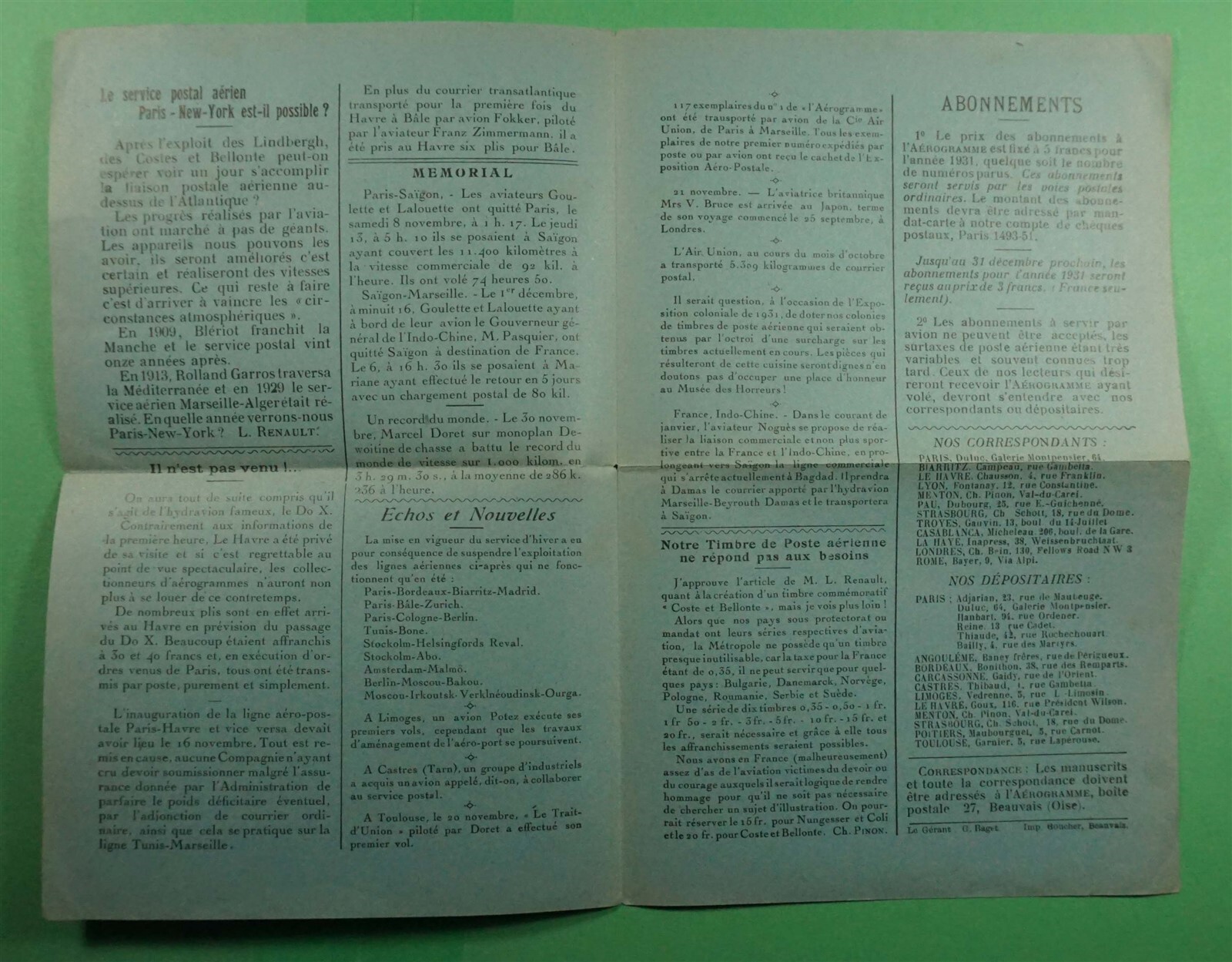 DR WHO 1935 FRANCE FOLDED ADVERTISING BEAUVAIS AIRMAIL ...