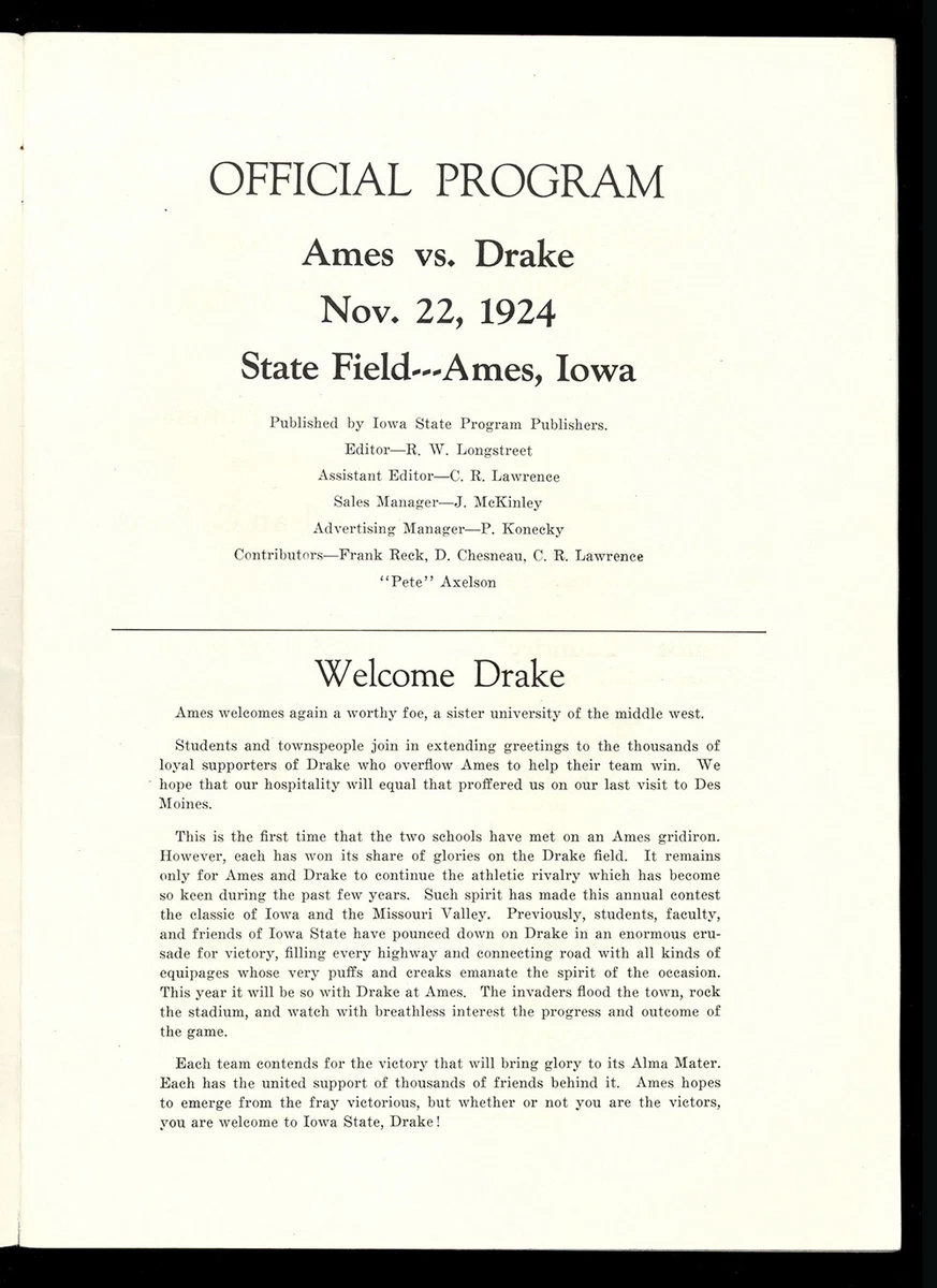 1924 DRAKE BULLDOGS AT IOWA STATE CYCLONES FOOTBALL PROGRAM AND ...