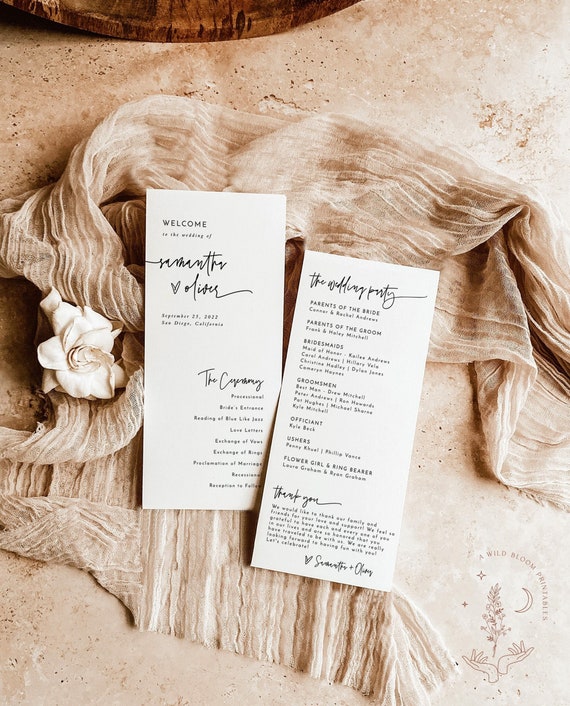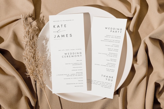 Modèle de programme de cérémonie de mariage, modèle de programme simple, ordre de service de mariage élégant, programme de mariage modifiable, templett, KATE - Etsy France