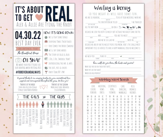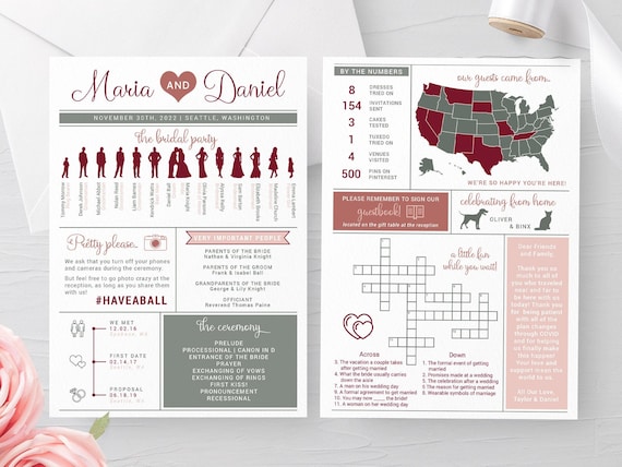 Newspaper Wedding Program Template, Editable Wedding Infographic, Unique Wedding Program, Printable Wedding Timeline, Wedding Word Search - Etsy Ireland