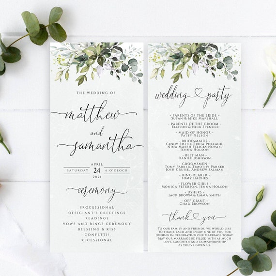 CHLOE modèle de programme de mariage, modèle de cérémonie de verdure, programme de mariage imprimable, ordre de cérémonie modifiable programme de mariage Templett - Etsy France